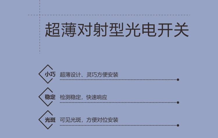 ECOTTER 超薄對(duì)射光電開(kāi)關(guān) GN-04T系列 有正面對(duì)射和側(cè)面對(duì)射款,安裝距離(檢測(cè)距離)可選100mm\500mm\800mm,可根據(jù)應(yīng)用情況選擇。