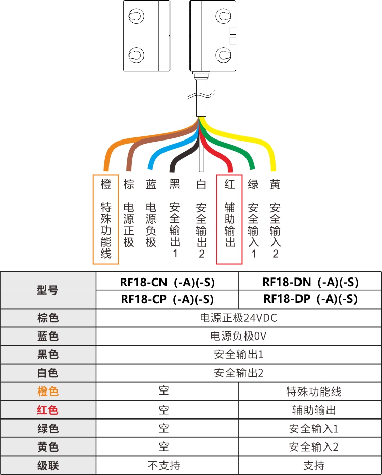 特殊功能線設(shè)計(jì),是用于唯一編碼的感應(yīng)器和執(zhí)行器重新配對(duì)。我們?cè)谑褂冒踩T開關(guān)的時(shí)候,選擇唯一編碼可以最大程度的限制感應(yīng)器的觸發(fā)條件,以提高安全性,但是現(xiàn)場(chǎng)可能由于各種原因,無法找到與感應(yīng)器配對(duì)的唯一執(zhí)行器,或現(xiàn)場(chǎng)裝亂了。
