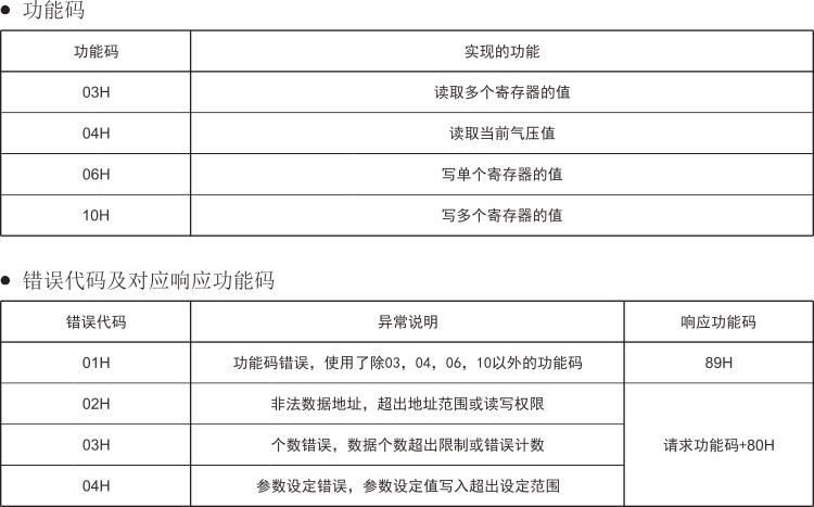 ECOTTER 數(shù)顯氣壓表 485通訊說明