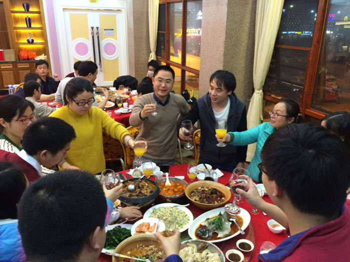 晚會,開始楊總就為我們總結(jié)過去,展望未來,同時帶領(lǐng)我們?yōu)榱颂旃み@個大家庭的親情、友情、恩情一起舉杯歡飲。