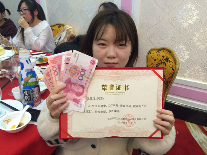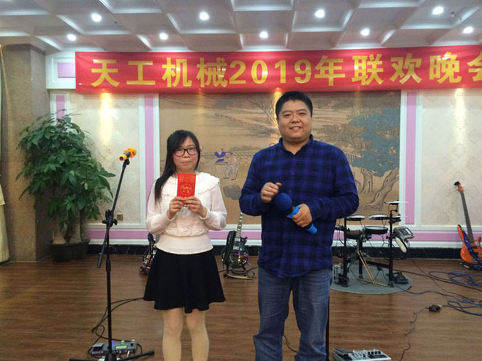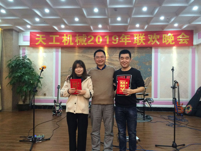 最后,我們?yōu)楫?dāng)晚的幸運兒表示祝賀,為優(yōu)秀員工表示崇高的敬意。2018已經(jīng)結(jié)束,2019才剛剛開始,讓我們天工的家人們一起乘風(fēng)破浪、披荊斬棘,把2019裝飾成一個更美好的明天。天工機械加油,2019加油!