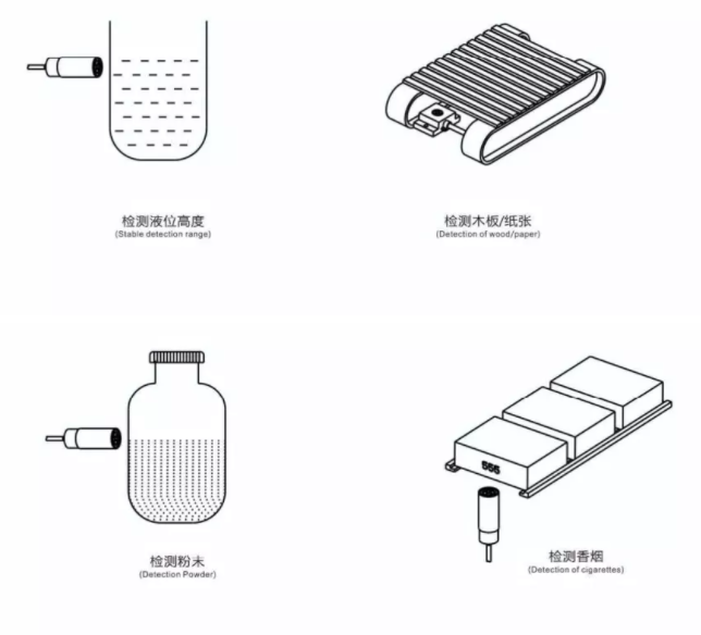 不同物體的導(dǎo)電率、介電常數(shù)、體積吸水率等參數(shù)不一樣、對(duì)應(yīng)的檢測距離也也不一樣。
