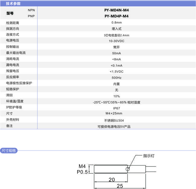 M4 圓柱型接近開關(guān)PY-MD4-M4
